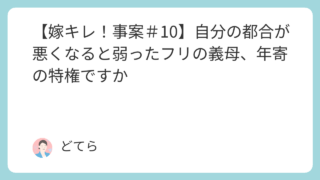 ムカつく事案 【嫁キレ!事案#10】自分の都合が悪くなると弱ったフリの義母、年寄の特権ですか