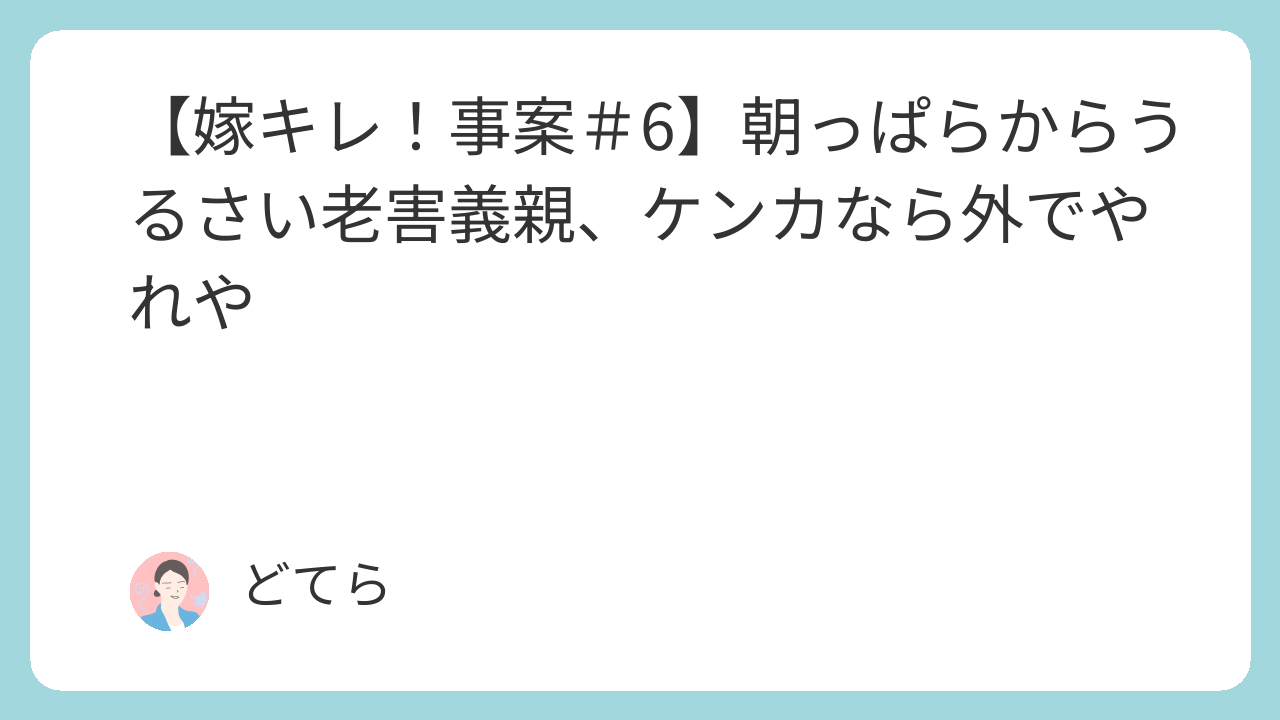 いつも「私たちばっかり気を使ってる」みたいな素振りをしているくせに、こちらへの配慮など1ミリも感じたことはない。私たちの方がどれだけ義親どもに気を使い、我慢していることが多いことか。あいつらの体内時計は腐ってる。